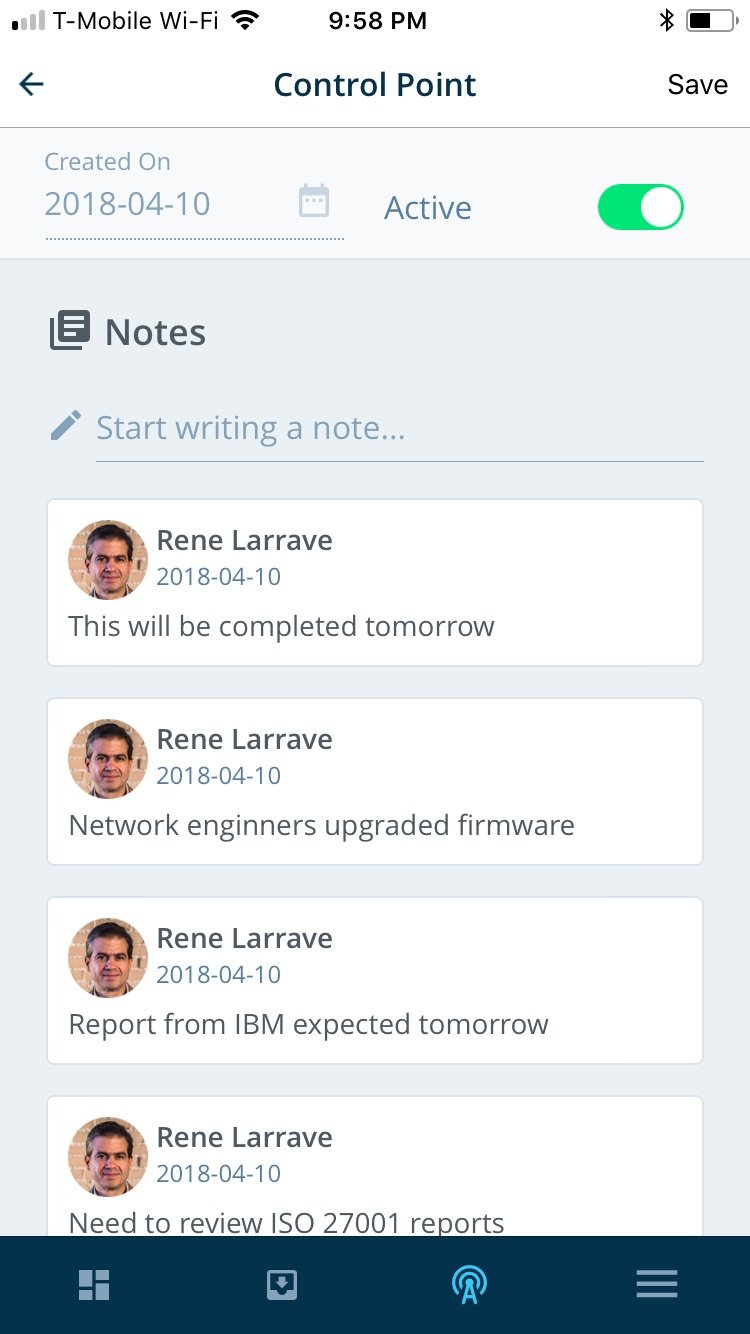 These advances in productivity in the workplace also apply when Control Points are escalated because all those detailed Notes are now also available to the next level.